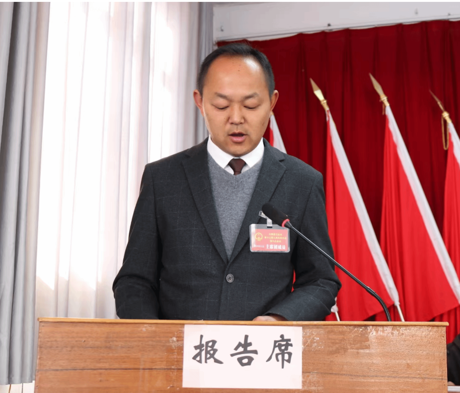 会议在庄严的国歌声中拉开序幕,乡党委书记夏国聪作了讲话并提出工作要求,激励各位代表在新的一年精诚协作、攻坚克难、奋发向上,奋力开创三台发展新局面。
