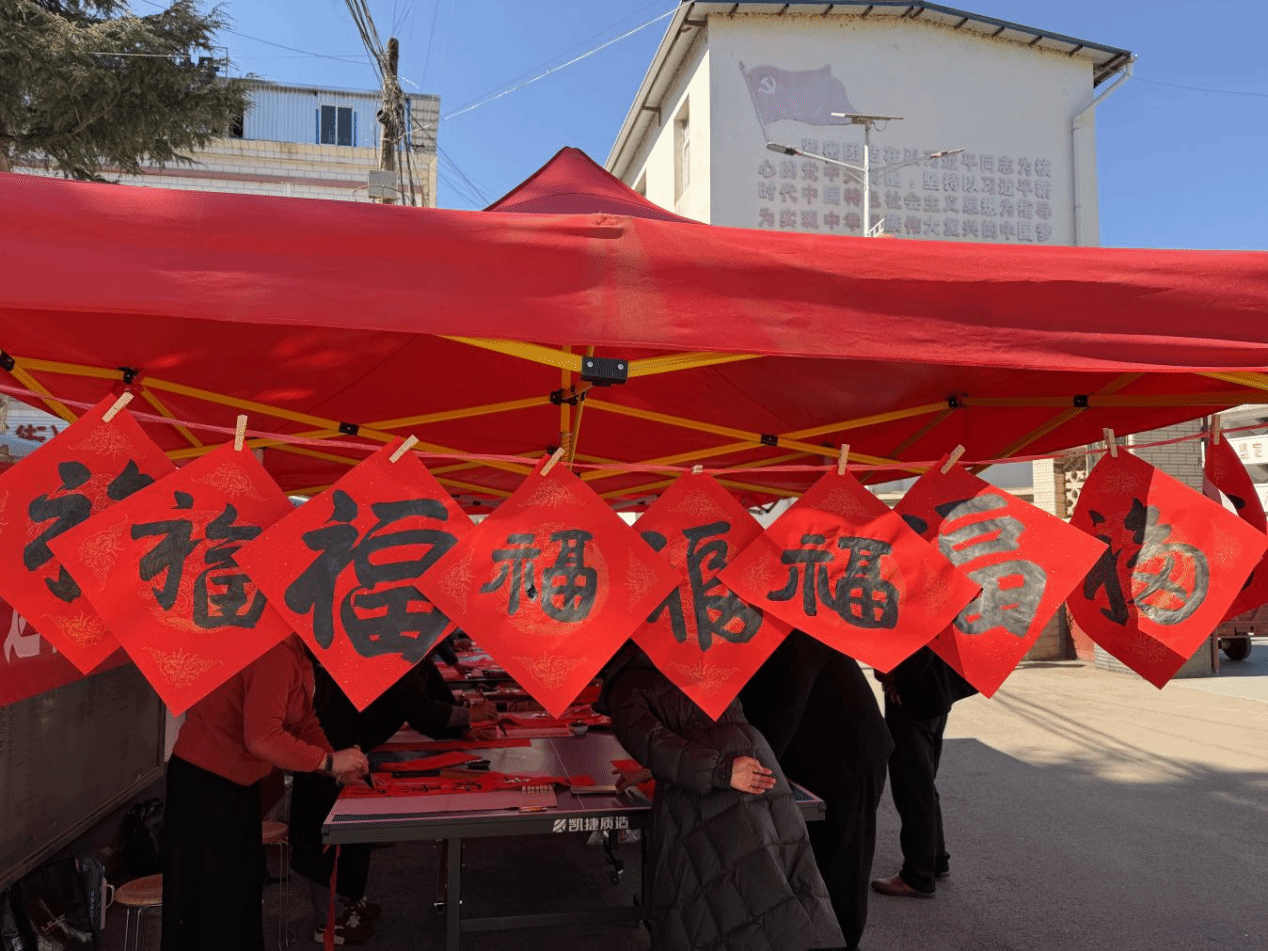 活动当天,恰逢赶集日,现场暖意融融,翰墨飘香,县书法协会的老师们凝神聚气,泼墨挥毫,将新春祝福融入一笔一画,楷书端正大气,行书潇洒飘逸,一副副寓意吉祥的春联、一个个饱含温度的福字跃然纸上。