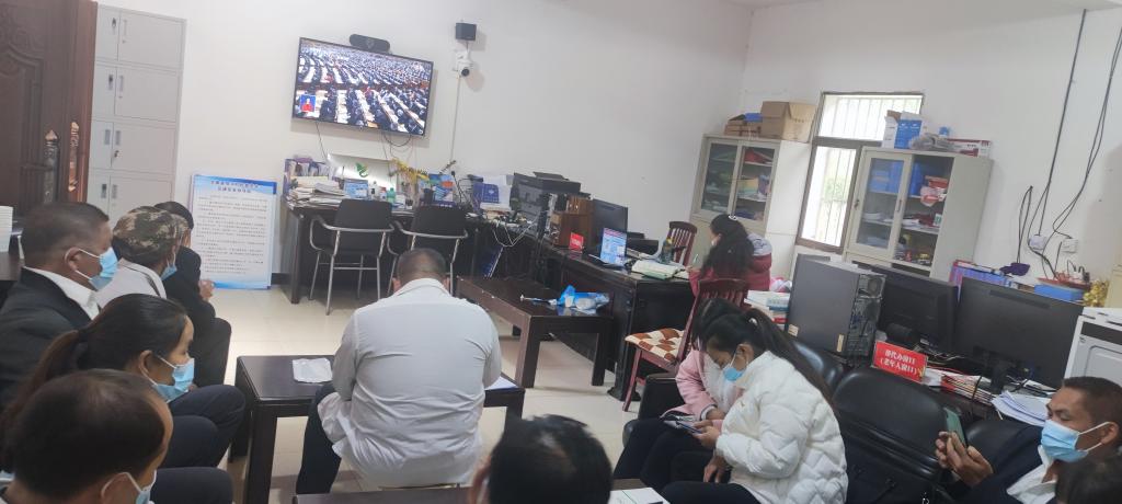 10月16日上午,中国共产党第二十次全国代表大会在北京开幕,六苴镇组织党员干部、镇村干部职工、人民群众观看开幕会。