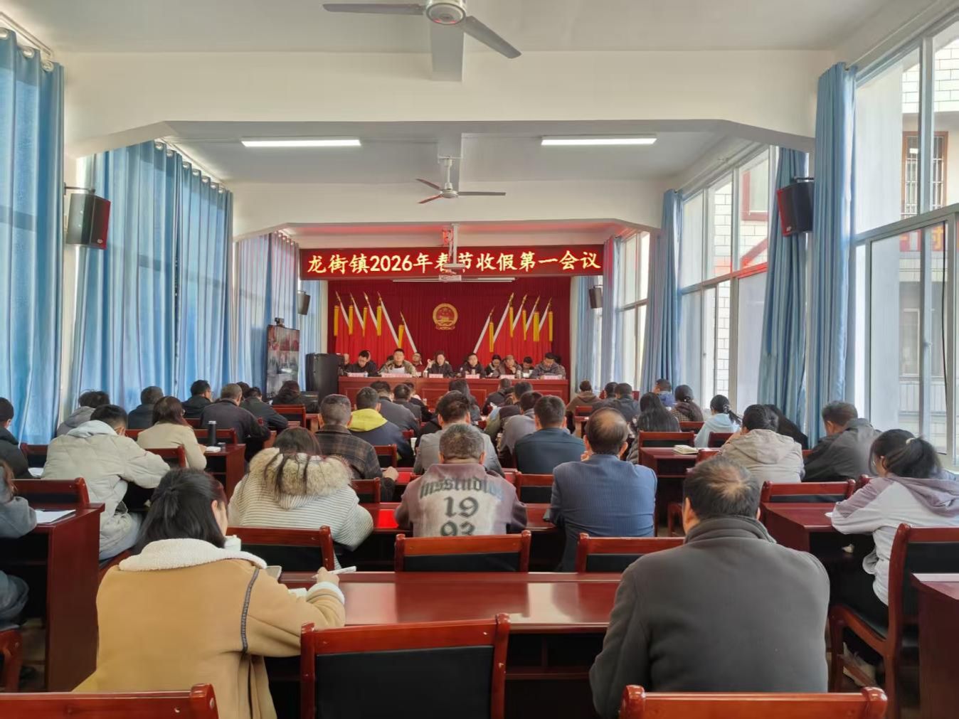 2月23日,龙街镇2026年春节收假第一会议在镇大会议室召开。镇党政班子成员、全体干部职工、全体村(社区)“两委”班子成员参加会议。会议全面总结春节期间各项工作,深入贯彻落实县级相关会议精神,对节后收心归位及近期重点工作进行安排部署,动员全镇上下迅速从“假期模式”切换至“工作模式”,以饱满的热情、务实的作风开启新一年工作新征程。