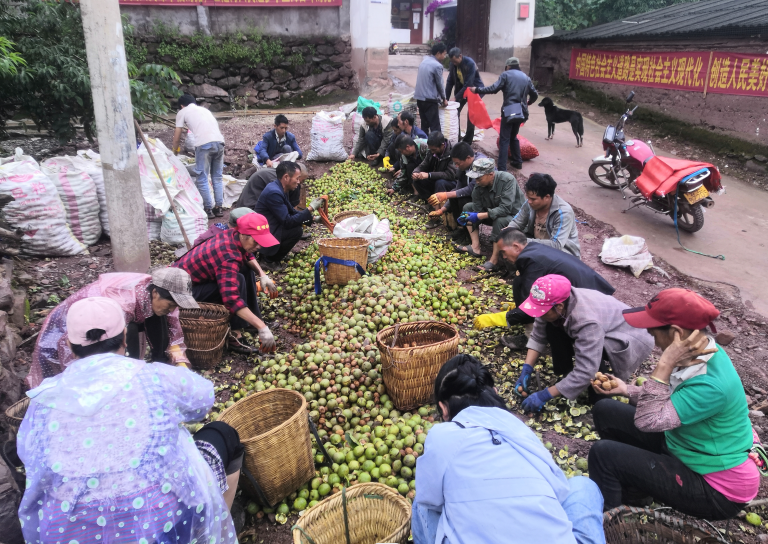 湾碧乡立体气候明显,高山片区村委会气候适宜,雨量充沛,是核桃的最佳适生区。这里独特的自然环境种植出了果仁饱满、皮薄、个大、味香的优质核桃。核桃外形美观,种仁饱满,仁皮白净,风味香甜润口,其中以薄皮核桃品质最佳,其特点是皮薄仁满,色泽金黄,如果两手持核桃一碰,皮破碎,整个核仁自然脱出,呈大脑纹路状,恰如一件精心雕制的古玩,放在嘴里越嚼越香,滋津生液。核桃产业已成为该乡乡村振兴的优势主导产业,家家户户都种植。