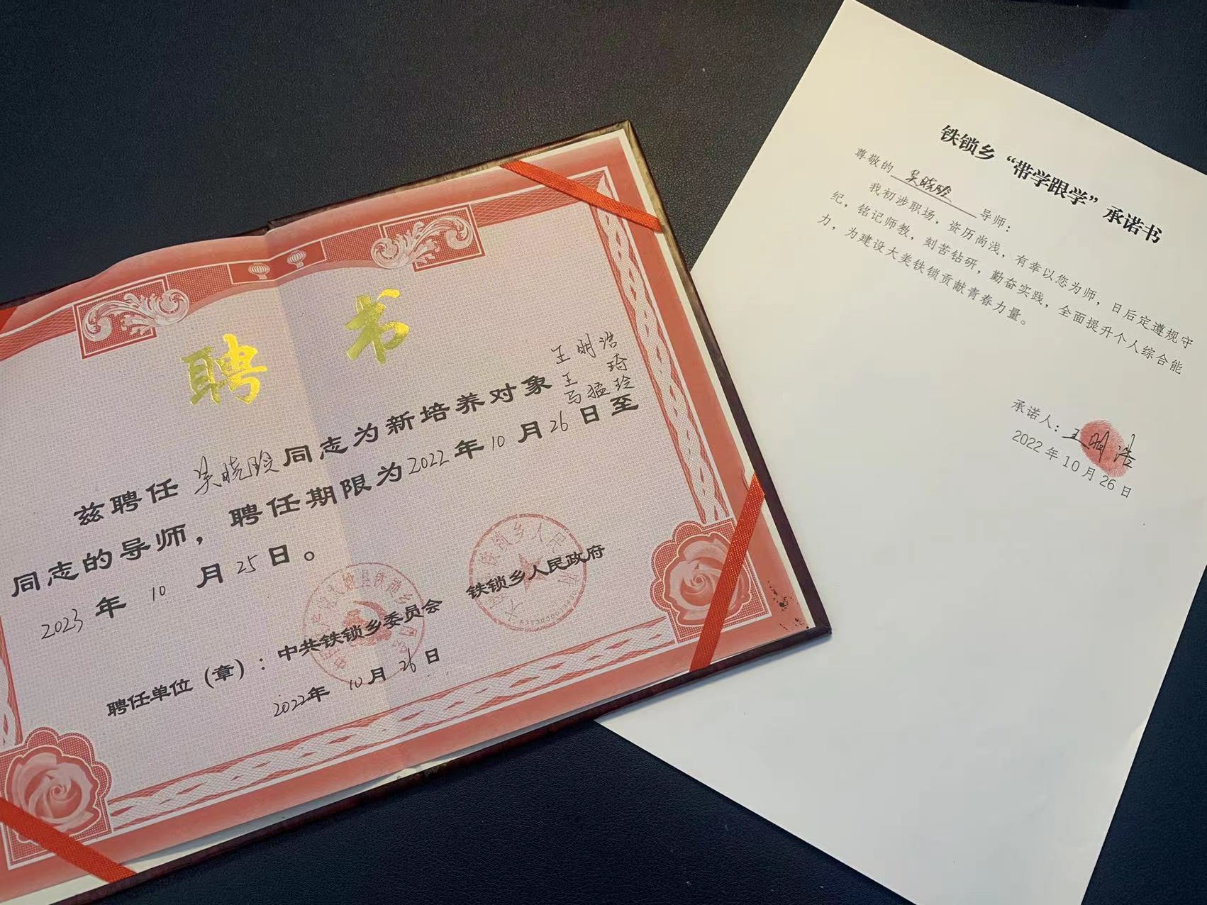 制定《“带学跟学”协作工作机制》,乡党政班子成员与全乡32名中青年干部结成学习小组,以老带新,以新帮老,帮助年轻干部、新入职干部更快的熟悉工作职责,提高工作能力,全面促进铁锁乡各项工作提质增效,展现铁锁乡干部良好精神风貌,于10月26日举行了铁锁乡“带学跟学”启动仪式,向带学导师发放聘书。