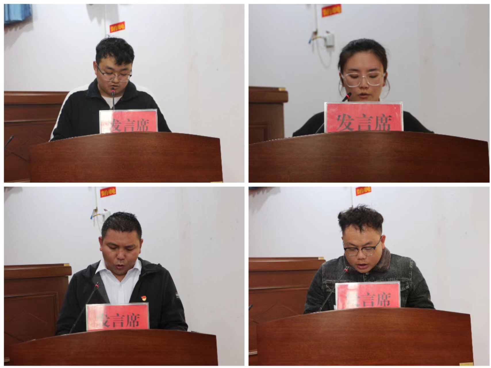 跟学人员代表席小松同志、马猛玲同志、鲁洪同志、胡华财同志分别围绕 “如何发挥自身长项,补齐个人短板,通过跟学实现个人成长进步”进行发言。