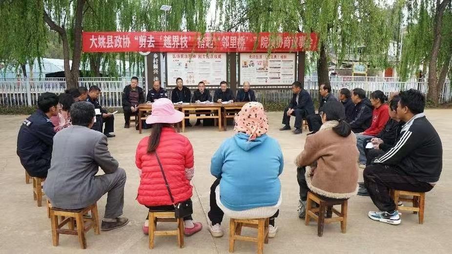 近日,一场以“剪去‘越界枝’搭起‘邻里桥’”的院坝协商议事会在金碧镇胡屯村委会付冲小组召开,县政协相关领导、金碧镇镇村干部、乡贤、村民代表及群众等30余人参会,聚焦邻里“微矛盾”共商解决之策,推动基层治理提质增效。