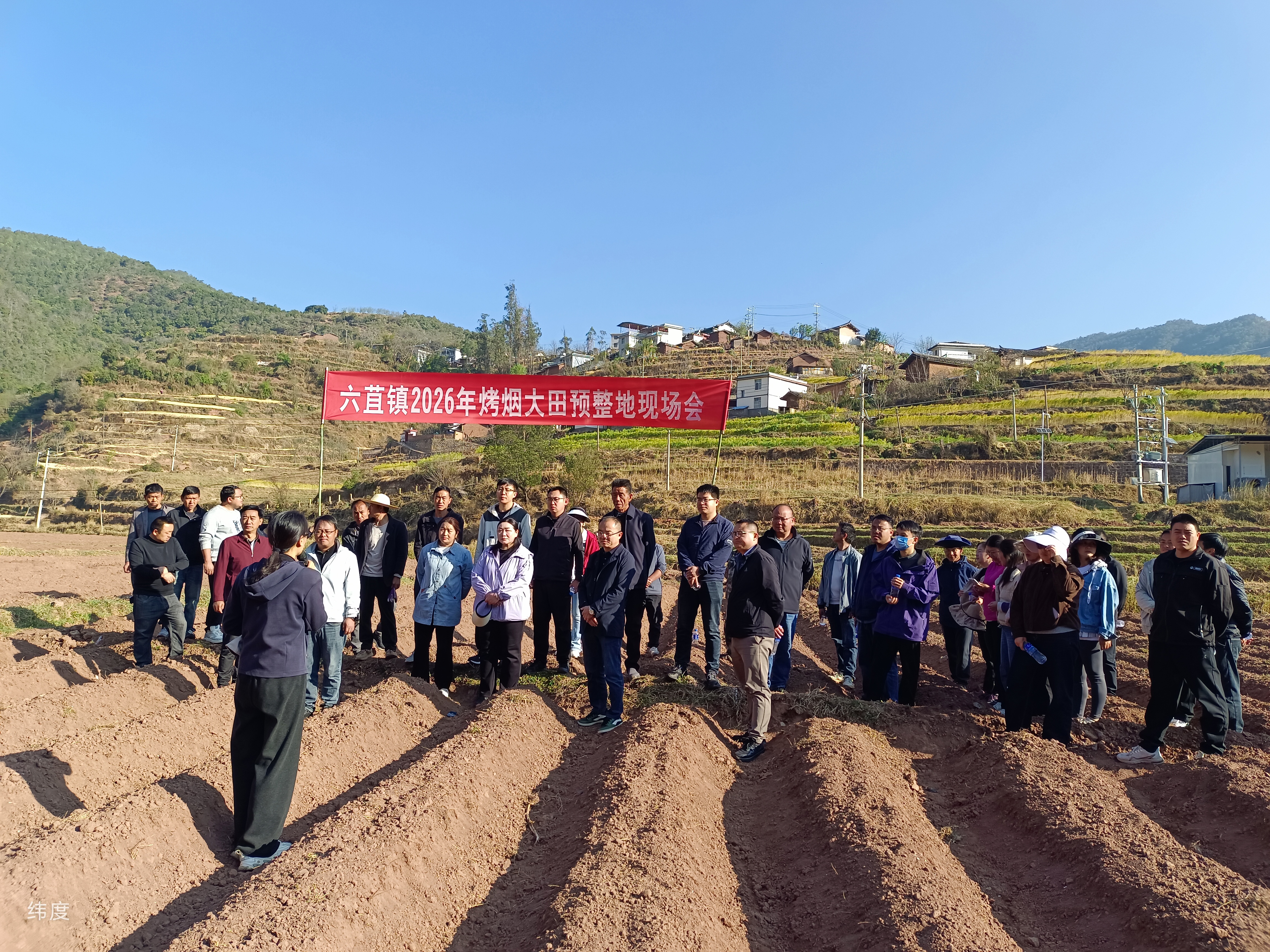 春回大地备耕忙,烟田提质正当时。为全面部署2026年烤烟生产各项工作,筑牢烤烟产业发展根基,3月27日上午,六苴镇采取“现场观摩+集中部署”的方式,召开2026年烤烟预整地暨烟叶生产工作会议。镇党政班子成员、烟叶站全体干部职工、各村(社区)党总支书记、部分烤烟种植大户等70余人参加会议。