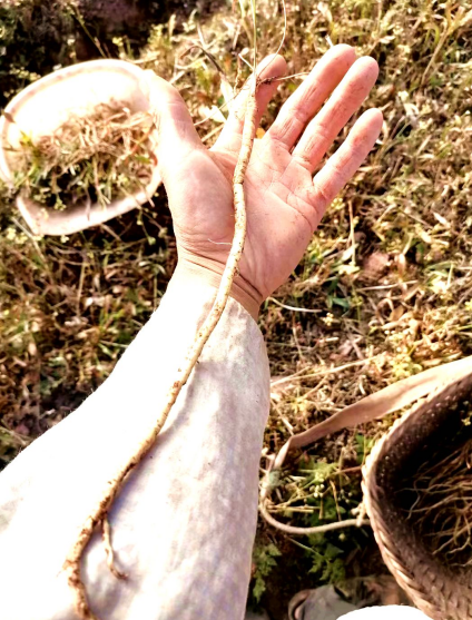 竹叶防风规模化种植背后还有一段小故事,文宜拉村种植户刘恩志在2018年担任护林员期间,在巡山时无意将竹叶防风照片发到朋友圈,便吸引了几位中药材收购商询价,他便上网查询竹叶防风的相关信息,令他没想到的是,看起来不起眼的小苗还有那么高的药用价值,这对于多年时种植重楼的他来说,感到意外和欣喜。之后,他便动员家人承包山林,开始人工种植竹叶防风。