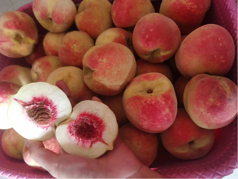 冬桃,每年3月—4月开花,10—11月成熟。吸饱天地精华的一枚枚冬桃,如大闹天宫里的蟠桃,长的仙气飘飘,脆甜可口。冬桃具有果肉离核、绒毛不多的特点,好吃方便。冬桃的营养十分丰富,含丰富的维生素c、抗氧化剂、膳食纤维、铁元素,能增加人体血红蛋白数量,这就是古人相传的:常吃桃子能“益颜色”,还能调节脂肪代谢、保护肝脏、提高免疫力等等。南冲的冬桃采用纯天然机有肥料与无污染地下水源的双重供养,是非常健康的绿色食品。