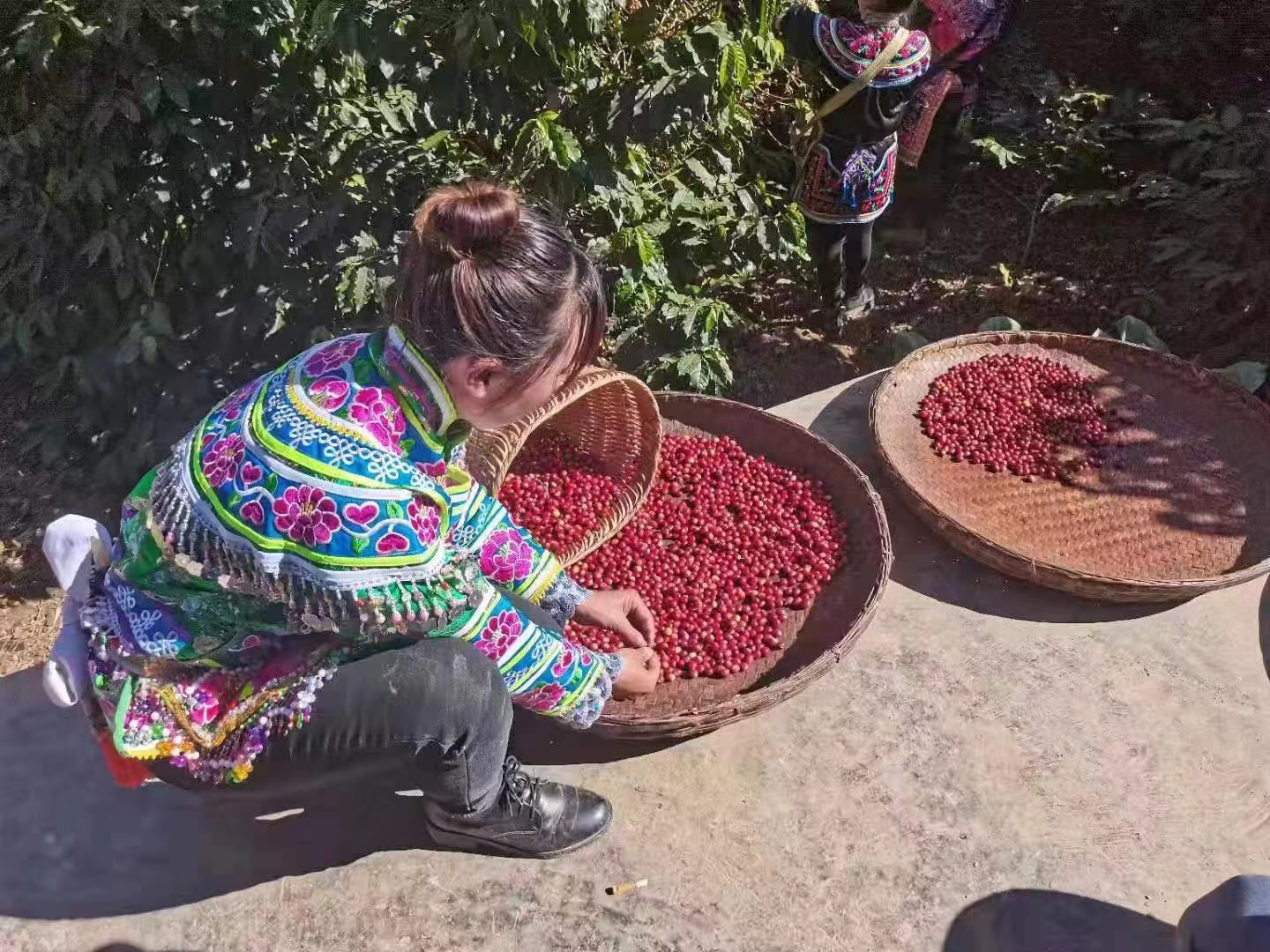 咖农杞金云黝黑的皮肤也难以掩盖他的喜悦,他笑着说:“我家种植咖啡2亩,今年产量(干果)1.1吨,可以卖7000余元,明年我将计划新植1亩,不断增加收入”。