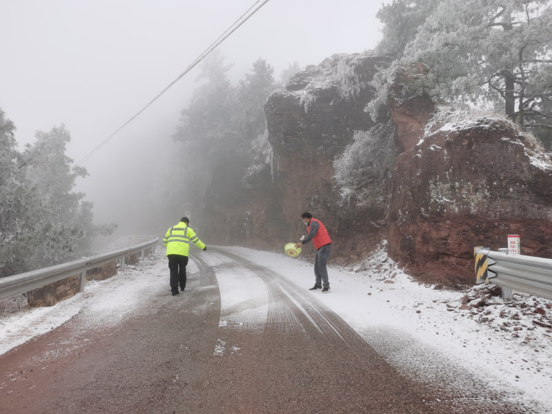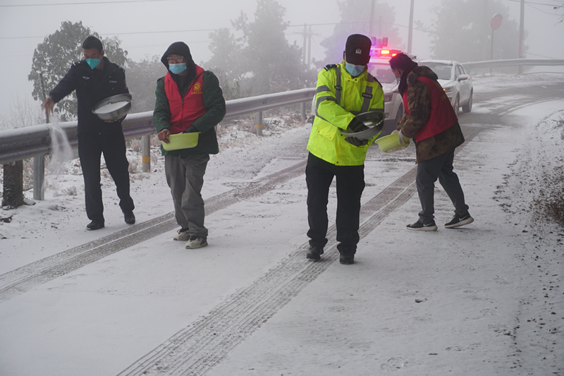12月18日清晨,昙华乡的气温低达零下3摄氏度。为了保障辖区内的群众平安出行,昙华乡迅速行动,联合乡派出所的民警,在乡辖区内瓦拉公路沿线撒工业盐清除路面积雪。经过大家共同的努力,路面的积雪清理完毕,给群众出行创造了安全畅通的交通环境,为过往群众开辟出一条“平安路”。