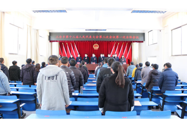 下午1:30,在雄壮的《国歌》声中三台乡第十三届人民代表大会第三次会议隆重开幕。
