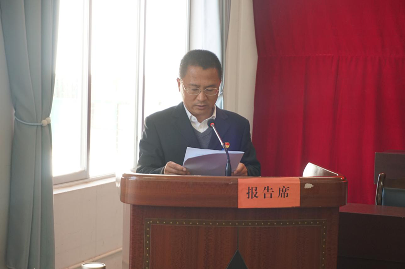 图为闪雪军同志代表乡人大主席团向大会作报告