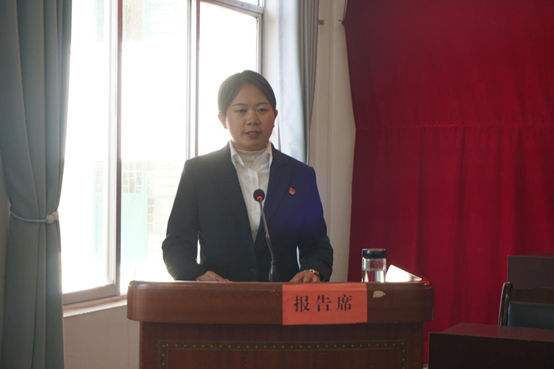 图为许晓丽同志代表乡人民政府向大会作报告