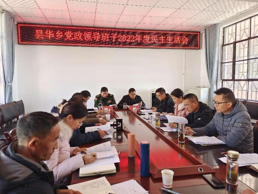 2023年2月1日下午,昙华乡召开党政领导班子2022年度民主生活会。乡党委书记李瑛正主持会议,县委常委、县人武部政委李广山同志和县委第七指导组到会指导。