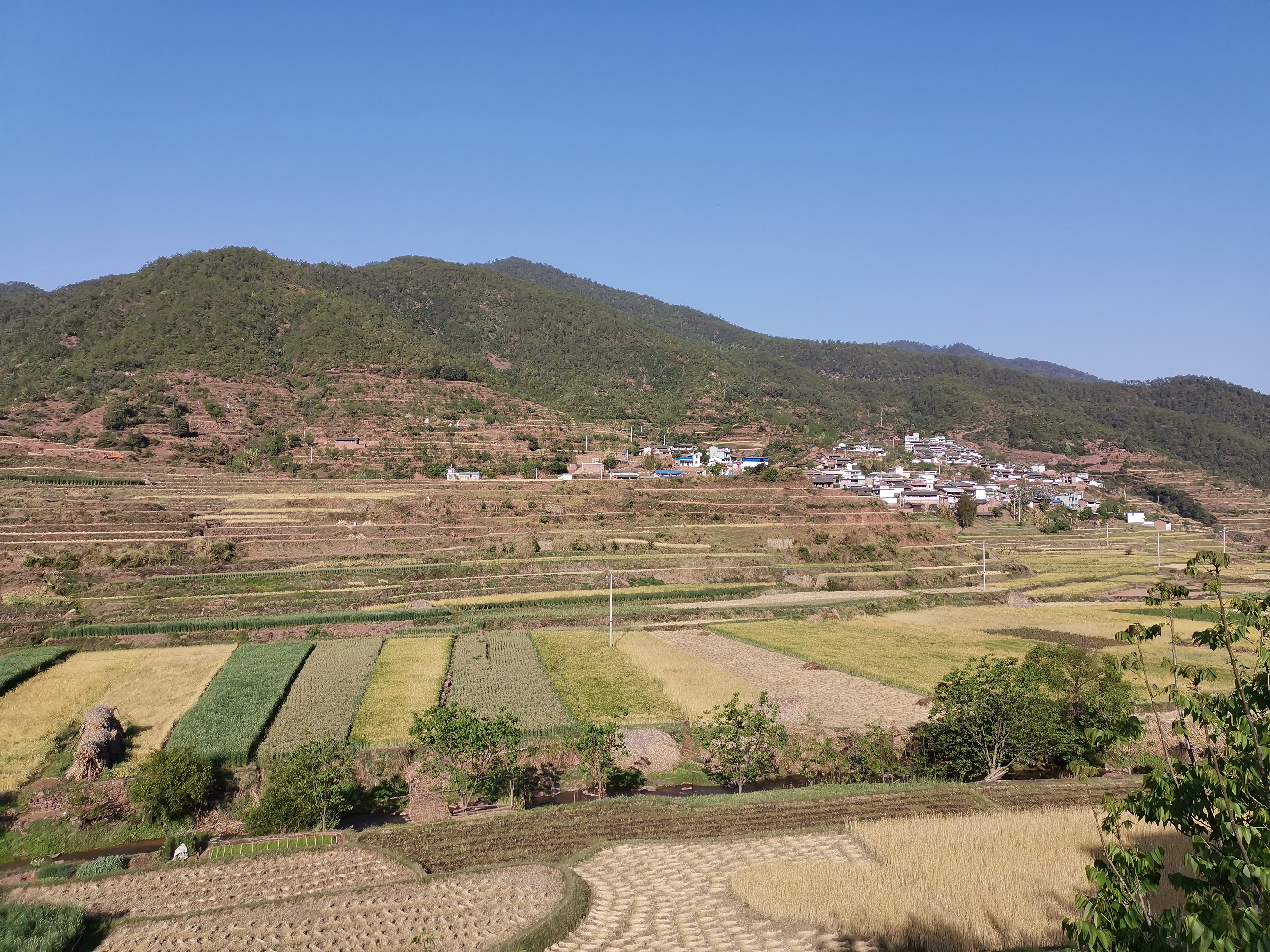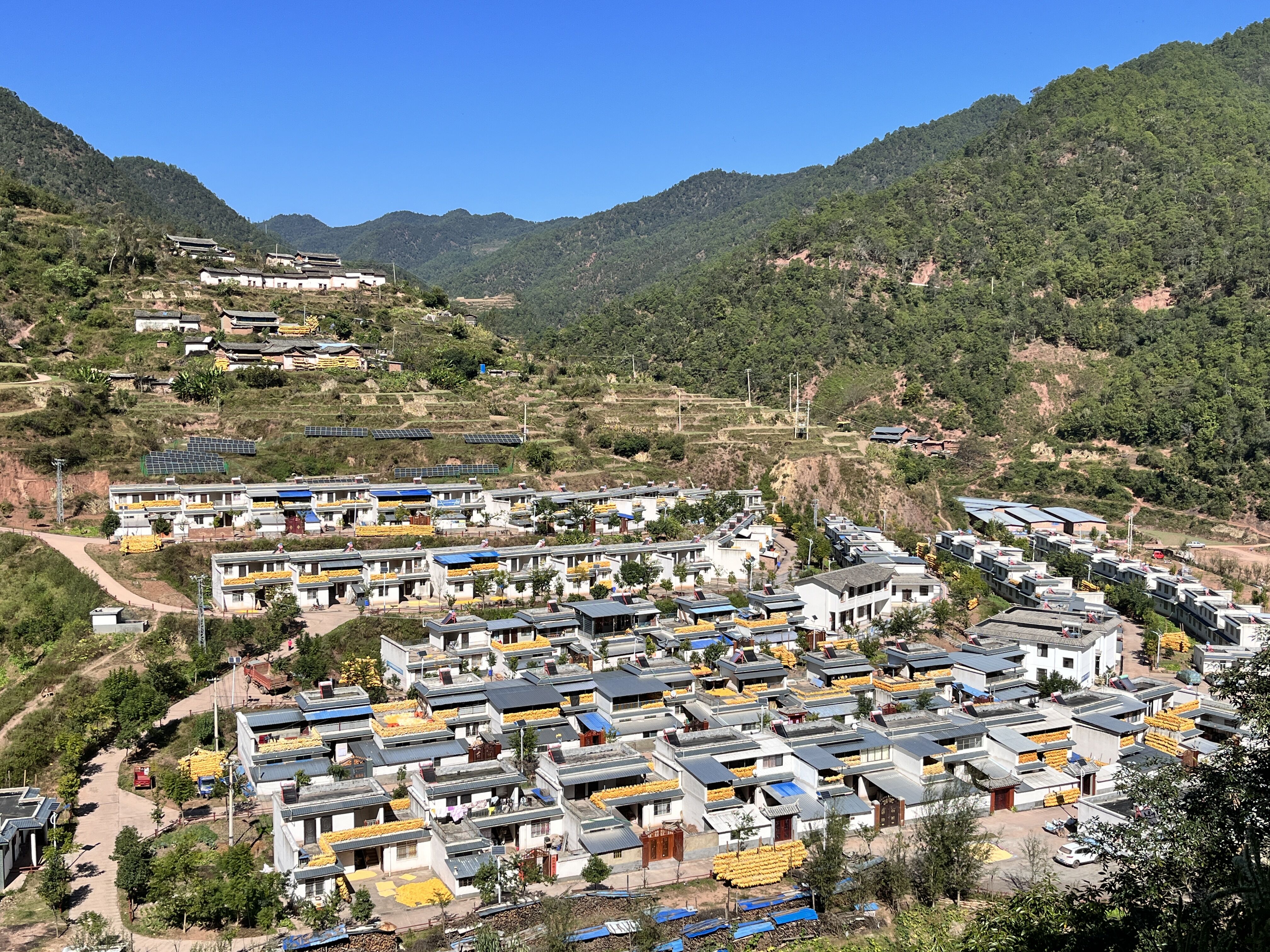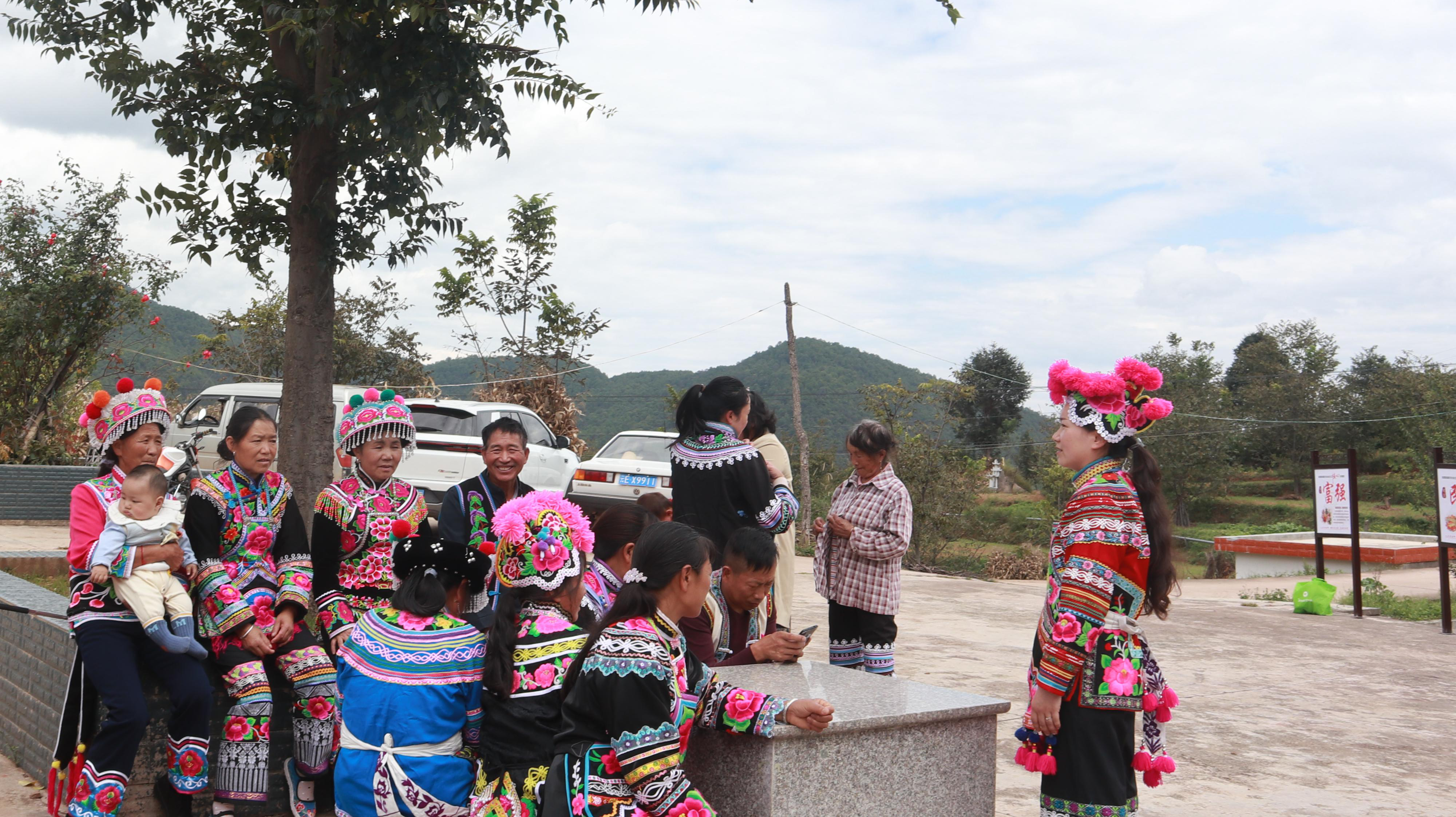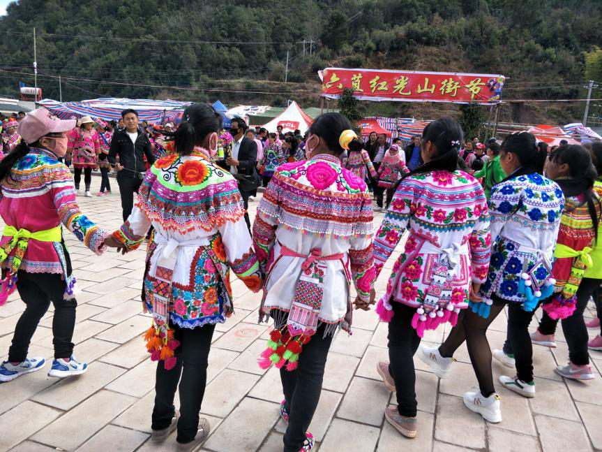 红光村委会谷底小组是2016年新建的小组,66户贫困户、13户地质灾害避让搬迁户于2017年搬迁入住,是典型的彝族聚居村落。谷底的7年,是小组成长的7年,也是民族团结画卷上浓墨重彩的一笔。村规民约里贯穿的是对民族传统习俗的尊重与包容,小喇叭里倡导的移风易俗尽显群众语言,公共篮球场上定时舞动着彝族左脚舞,坐在门口为玉米脱粒的老奶奶身上自制的彝族服饰是静谧村落的亮点。这里建起了核桃加工厂,发展起了小春萝卜等特色产业。7年来,这里秩序井然、民风和谐;7年来,各民族群众在交流交往中手足相亲、守望相助。