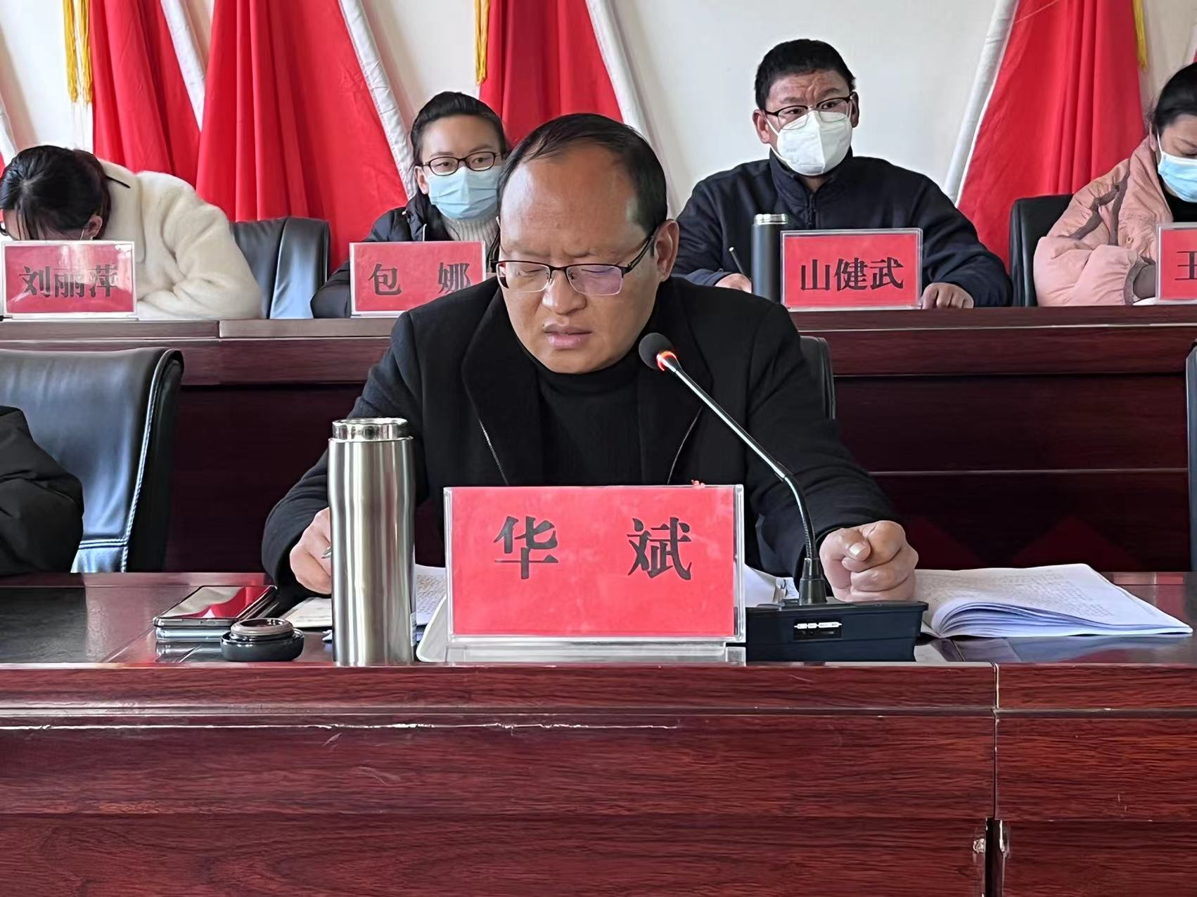 镇党政班子成员、各村(社区)党总支书记、镇属党支部书记、镇属各办公室、中心(站所)负责人、县驻镇各单位负责人、镇机关党支部、青年人才党支部全体党员参加了会议,镇党委书记华斌主持会议并讲话。