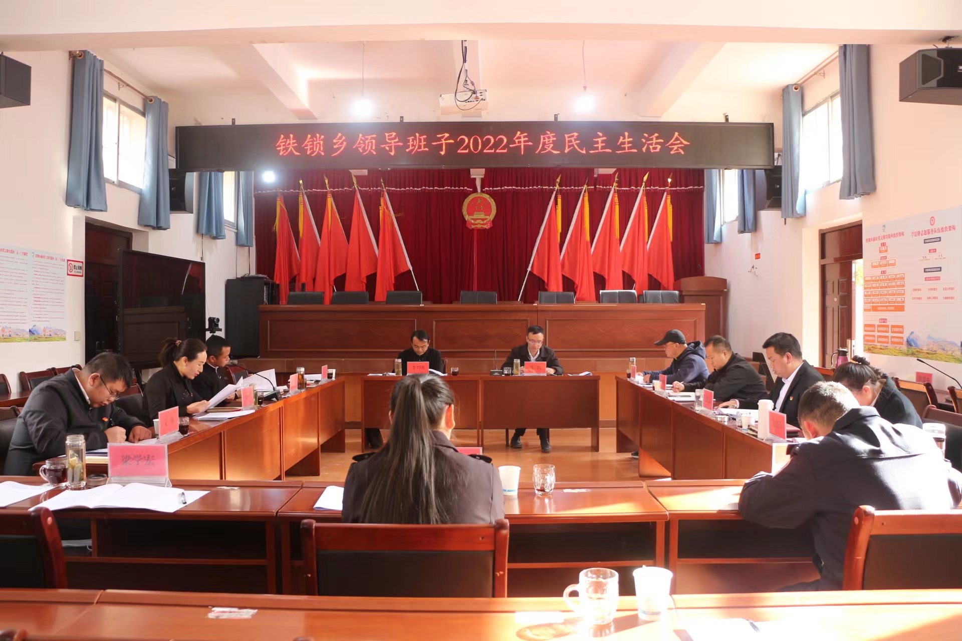 按照县委统一安排部署,2月8日,铁锁乡召开领导班子2022年度民主生活会。县委常委、县委政法委书记李兴明同志应邀出席会议并讲话,县委民主生活会第八指导组副组长马云鸿同志、指导组成员周其永同志到会指导。乡党委书记金凯同志主持会议,党政班子成员参加会议,部分基层党总支书记、党代表、群众代表、政协委员列席会议。
