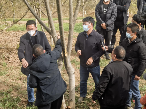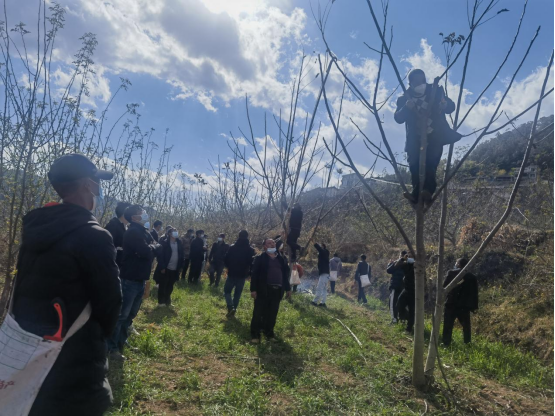 培训现场采取理论讲解和实地示范的方式进行。首先技术人员用通俗的语言,深入浅出地从核桃的合理密植、科学施肥、整形修剪、常见病虫害防治等方面进行了详细讲解。随后,技术人员还实地示范了环状深沟施肥、整形修剪、树干涂白等操作,并让参训的核桃种植户实际操作,对他们在操作过程中出现的问题及时予以纠正,耐心回答了农户提出的在种植过程中遇到的各种问题。