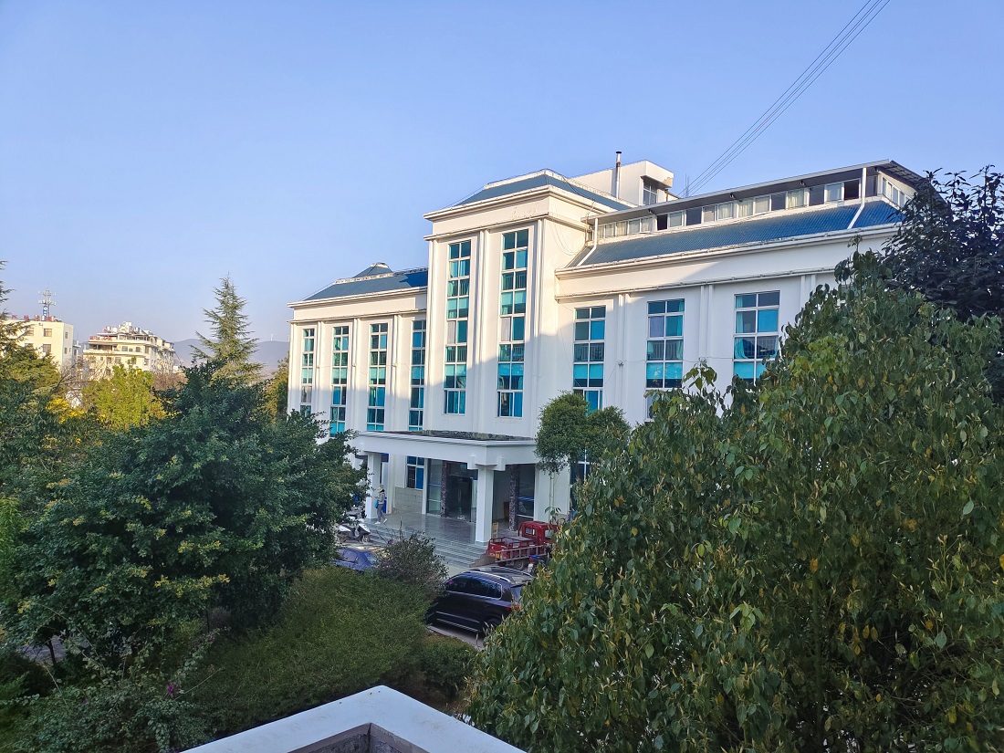 金碧镇主楼仿江南楼宇的建筑,秀丽典雅,屋檐上翘,形如飞鸟展翅,独具特色。院内,花草树木名目繁多,每一季都有看头,现在这个季节四季山茶如火如荼,随处可见樱花骨朵含苞待放,迎春花向阳绽放;一到六七月,一场濯枝雨后,芍药月季花团锦簇、多肉俏皮圆润,霸王蕨翠绿欲滴;而到了冬季,暖阳散射,前院没有落叶木,应和着水洗过的冬日晴天,照样让人心旷神怡。绿化带边偶然窜头冒出的一两朵不知名小花,也仿佛宣誓着妆点这个冬天···