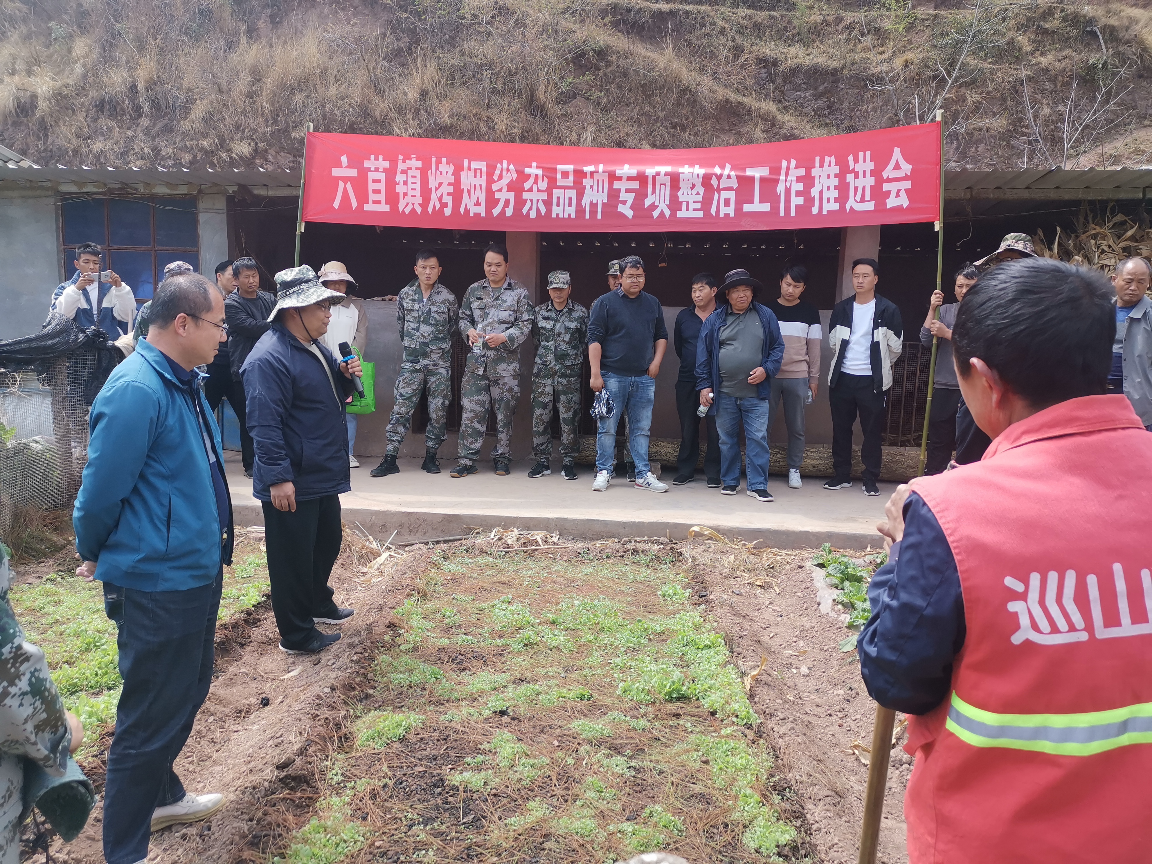 为统筹推进2023年烟叶生产暨劣杂品种专项整治工作,严格落实品种管控措施,全面提升烟叶质量,确保收购环节烟叶价格稳定,3月15日,六苴镇组织召开2023年烟叶生产“劣杂品种”专项整治推进会,镇党政班子成员、各村(社区)包村挂点组组长、各村(社区)党总支书记、村委会主任、六苴烟叶站全体工作人员,共计30余人参加会议。