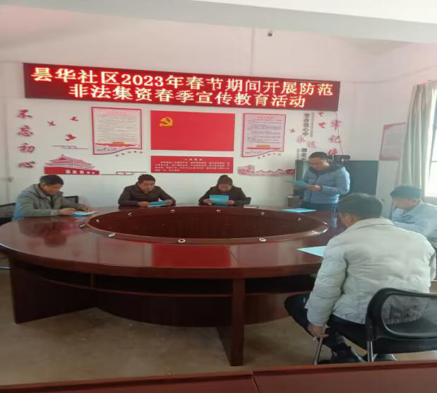 活动前期,昙华乡组织全体干部职工、各村(社区)党总支书记、主任召开了昙华乡防范非法集资春季宣传教育工作会议。会上,分管领导传达了县有关文件精神,并对昙华乡如何开展好2023年防范非法集资春季宣传教育活动作出了详细安排部署。