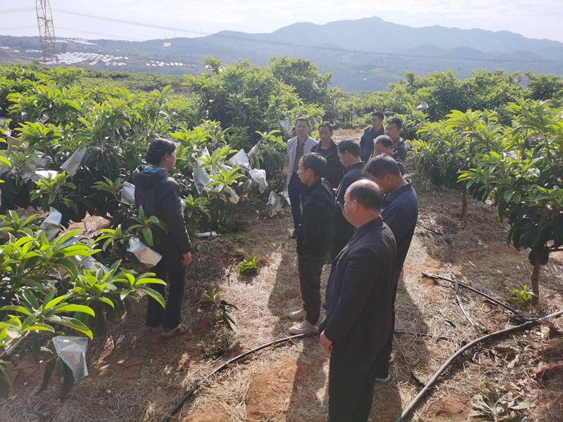 考察组最后到南华县五顶山乡牛丛村委会、赵家店镇黄羊岭村委会分别考察树葱种植和枇杷种植,考察学习中,大家边走边记,对树葱种子培育进行学习交流及枇杷后期管理技术、销售技巧展开讨论。