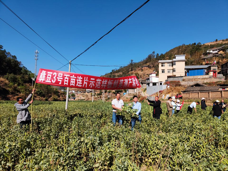 近日,楚雄州农科院组织全州各县(市)农技中心负责人到金碧镇金家地村委会长冲小组现场观摩蚕豆新品种(彝豆3号)高产示范样板测产验收工作。