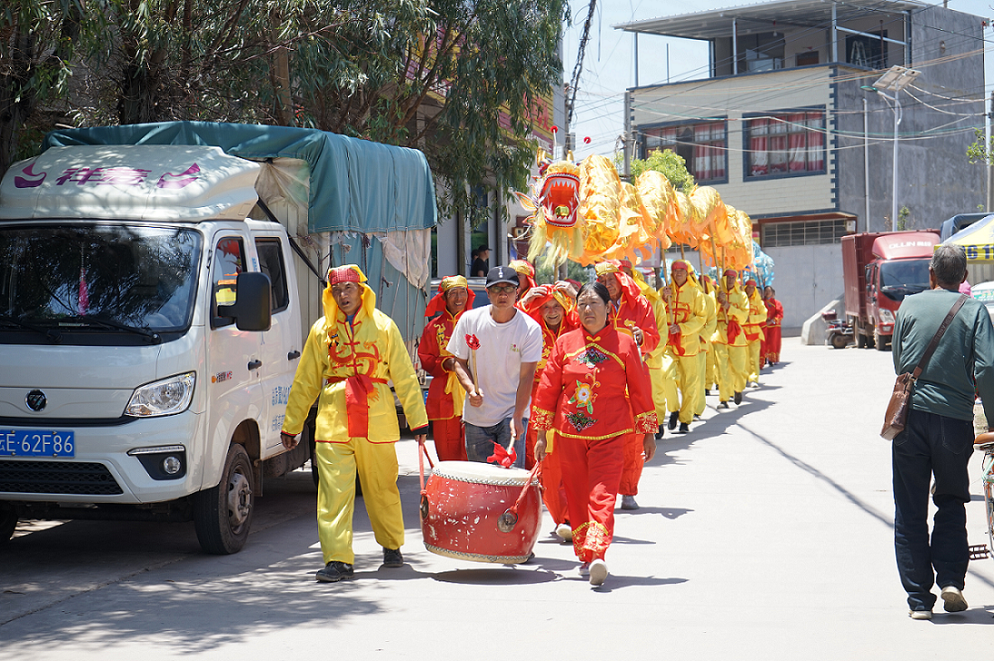 金碧镇人民政府联合大姚县文化馆负责出文艺节目,节目地点定在仓街老年活动中心。未时,只听闻,“舞龙来了”,仓街老年活动中心院子里锣鼓喧天,掌声四起,小小的院落挤满人。随着一个个接地气的花灯剧搬上舞台,一场场畅想二十大、歌唱新时代的歌舞表演让气氛随之活跃起来,观众仅存的一丝丝生分早已化为乌有,熟悉的“烟火气息”逐渐升温。