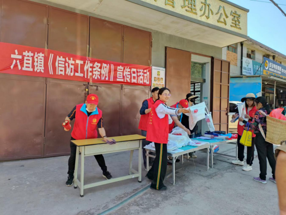 “地摊”普法接地气。普法工作队利用周三赶集日契机,化身“摊主”,到集镇“摆摊”,向过往群众发放《普法进万家》、《保普法强基补短板宣传册》、《中华人民共和国民法典宣传册》、《信访工作条例》等“法治礼包”,用群众喜闻乐见的方式,零距离、面对面精准将法律法规送到群众手中。