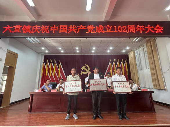为六苴镇党建引领乡村治理示范组的小组党支部颁发荣誉奖牌