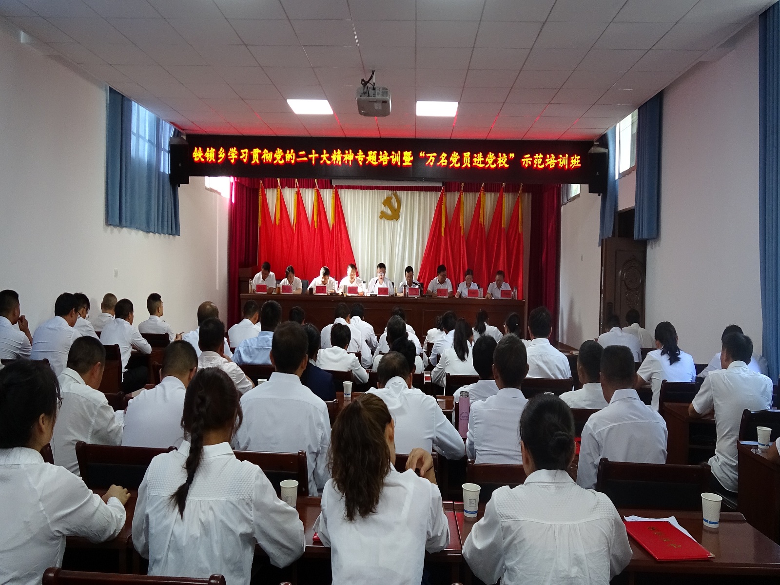 为深入学习贯彻习近平新时代中国特色社会主义思想和党的二十大精神,强化思想淬炼和政治历练,着力提高政治素养和履职能力,进一步凝聚全乡党员干部的思想和行动,推动各项工作创新争优、提质增效。铁锁乡于6月30至7月2日,举办学习贯彻党的二十大精神专题培训暨2023年“万名党员进党校”示范培训班。