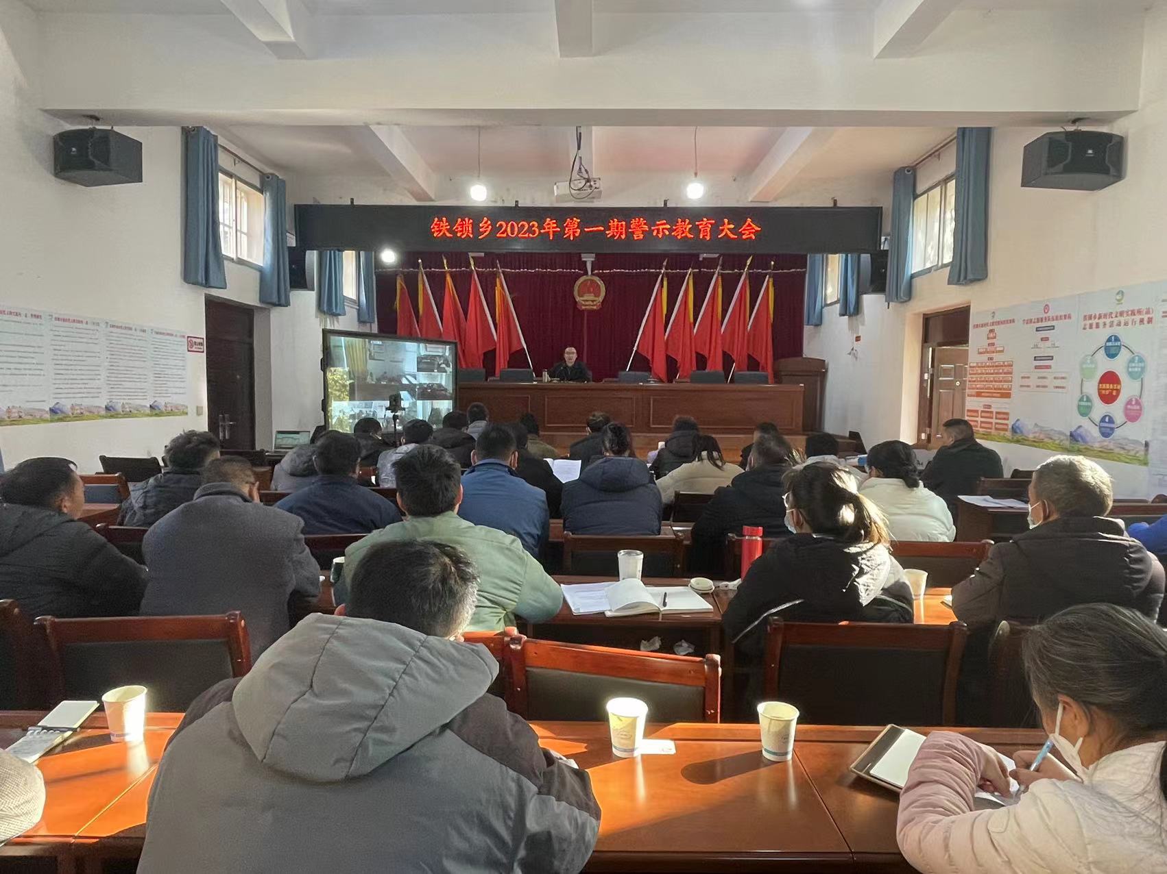 为认真贯彻落实中央、省、州、县纪委全会精神,发挥以案促改、以案促建、以案促治在推动标本兼治中的功效,坚定不移推动全面从严治党向纵深发展,锲而不舍构建风清气正的政治生态,1月29日下午,铁锁乡召开2023年第一次警示教育大会,会议以视频会的形式开至各村(社区),乡党政班子成员、全体干部职工、6个村(社区)四职干部、全体驻村工作队员、中心学校、卫生院负责人参加会议。