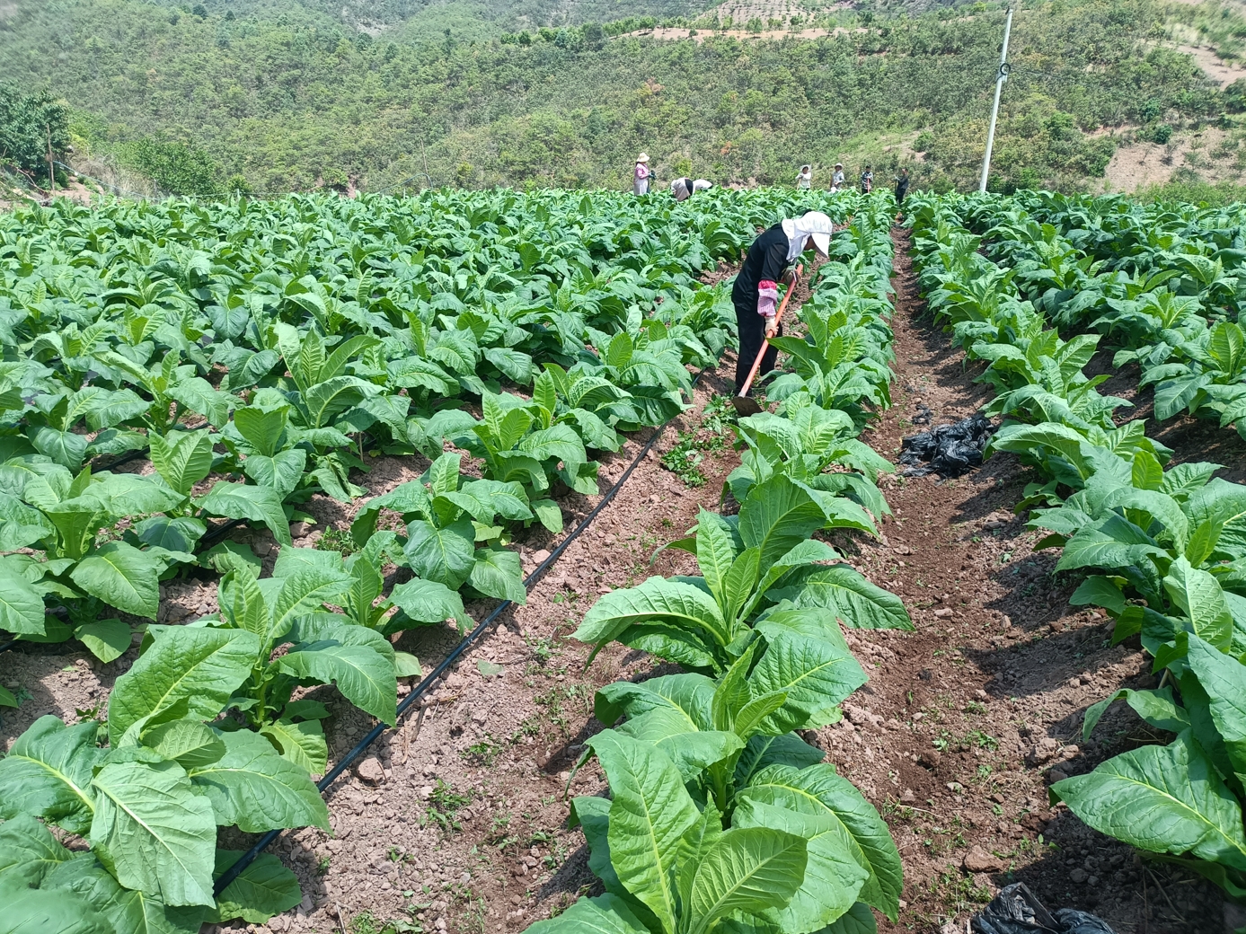 走进达么村委会菖蒲塘小组,嫩绿的烟叶铺满烟田,长势喜人,随处可见烟农忙碌着培土、除草施肥、防治病虫害的身影。进入芒种节以来,雨水逐渐增多,为预防雨水天气对烤烟的影响,烟农在培土的同时清理烟地沟路,保障排水通畅。“培土后使烟田能够达到沟无积水、墒无杂草,有效改善了烟株下部的田间小气候,对增加烟株防涝、抗倒伏和抗病能力,为烟株早生快发创造良好的生长环境。培土后根系活力增强,能有效延长烤烟生长期,提高烟叶产量和质量。”三岔河镇烤烟辅导员李光荣介绍。