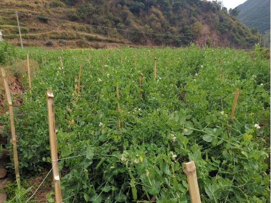 驻扎双河一周后,我完全克服了心理上的“水土不服”,与双河村融为一体。初时那种一条山冲、重山逼仄、视线困闭的窒碍感荡然无存。每天一跨出大门,“两河交汇”的独特自然景观就呈示眼前。尽管对面的山体有些荒寂,然而河畔田野中,亭亭玉立的青蚕豆苗、身材颀长的青豌豆苗,相互较着劲儿蹭蹭蹭往上长,咿咿呀呀一股脑儿开满白色、粉色、紫红色花朵,隐隐清香吸引着蜜蜂们也无暇歇息,频频在花间穿梭忙碌,采撷百花菁华,酿造人间极品。更有那一片片的双河柑橘,刚到成熟季,在一大蓬青枝绿叶间,枝头上挂满一枚枚黄灿灿沉甸甸的橘果,让人垂涎。不论是冬早豌豆、早青蚕豆,还是柑橘,都是双河村巩固拓展脱贫攻坚成果的“看家把式”。只不过,此时,它们在我眼中站成了一道亮丽的风景。