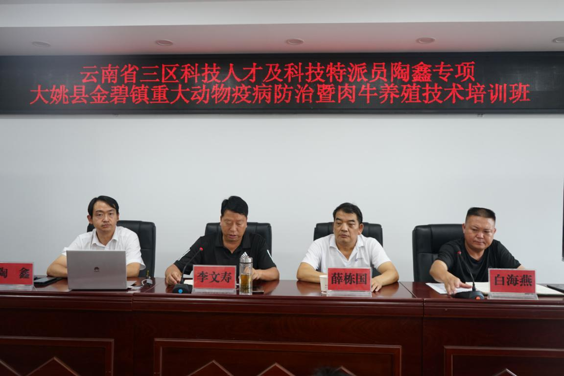 为不断加快肉牛产业发展步伐,提高全镇肉牛养殖技术,促进肉牛产业长期持续健康发展,7月12日,云南省三区科技人才及科技特派员陶鑫、大姚县农业农村局党委委员薛栋国到金碧镇开展重大动物疫病防控暨肉牛养殖技术培训。全镇27个村社区兽医员、存栏10头以上肉牛养殖大户100余人参加培训。