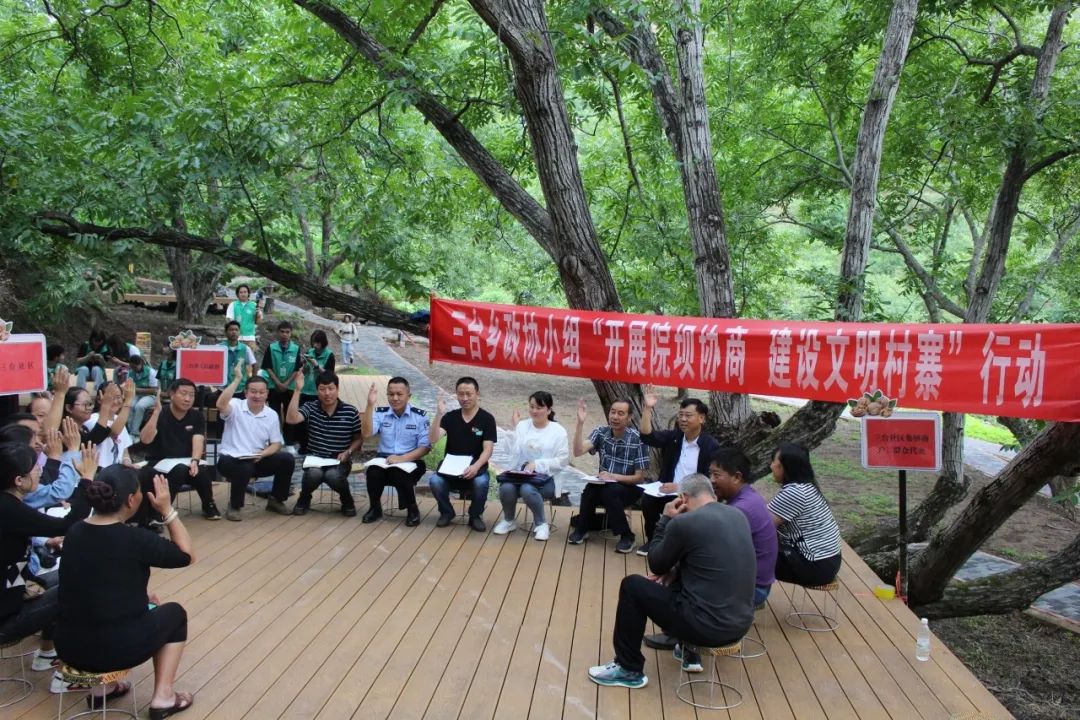 院坝协商活动现场,协商气氛异常热烈,协商议事组围绕“还山乡集镇‘宁静夜’”这一主题,就集镇夜间噪声扰民问题展开协商讨论,主要达成5项共识:一是强化联合执法,压实工作责任。联合派出所、司法所、综治办、市管所、文化站、中学等部门,对集镇每个区域、每个行业领域进行大排查大检查,对排查出的突出治安问题,逐一制定整治方案,明确责任人及整改时限,集中力量攻坚;紧盯学生放假、十点后夜间等关键时间节点,强化联合突击执法,对违法规定制造噪音的烧烤摊、KTV、喝酒滋事、飙车等行为进行严厉查处。二是强化宣传教育,扩面教育引导。盯住赶集日、学生收放假、举办重要活动等关键时间节点,以发放法律宣传画册、致群众一封信等形式,广泛开展道路交通安全、社会治安管理、反电信诈骗等宣传教育。三是建章立制,焕发“新气象”。召开户长、商户大会,结合三台集镇的实际,制定集镇管理公约,引导教育集镇群众共同遵守约定,树立文明新风。四是扎实开展文明创建活动,积极培育文明乡风。通过开展“文明家庭”“集镇光荣榜”“美丽庭院”“道德模范”等群众喜闻乐见的评比活动,激发村民参与热情;积极开展丰富多彩的文化活动,努力提升集镇群众文化素养和农村社会文明程度,促进农村精神文明建设水平不断提高。五是重点加大学校附近噪音整治,在关键路口设置“禁止鸣笛”警示标志,在重要路段安装“凸透镜”设施,在消除噪音的同时,最大限度减少道路安全隐患。