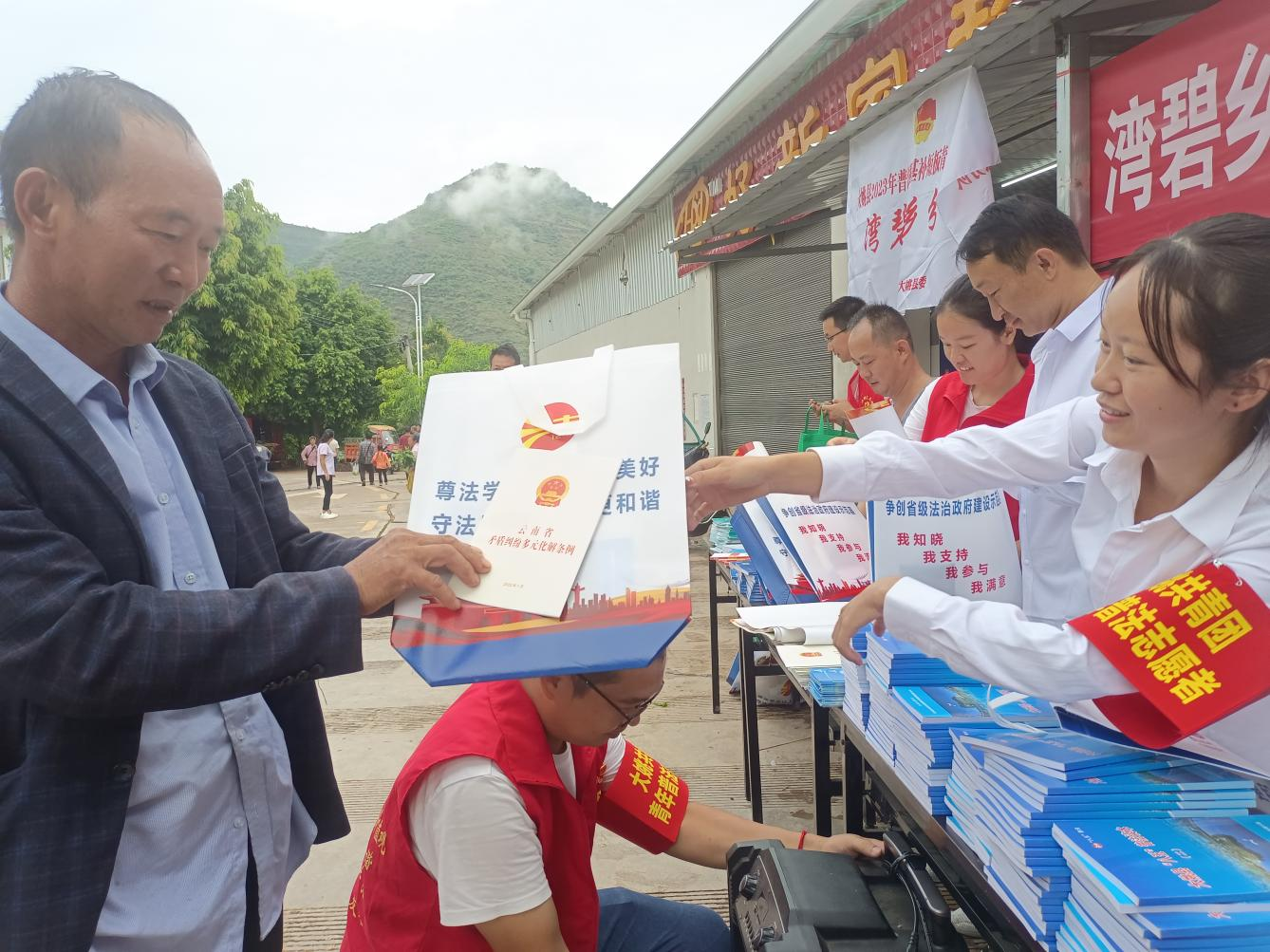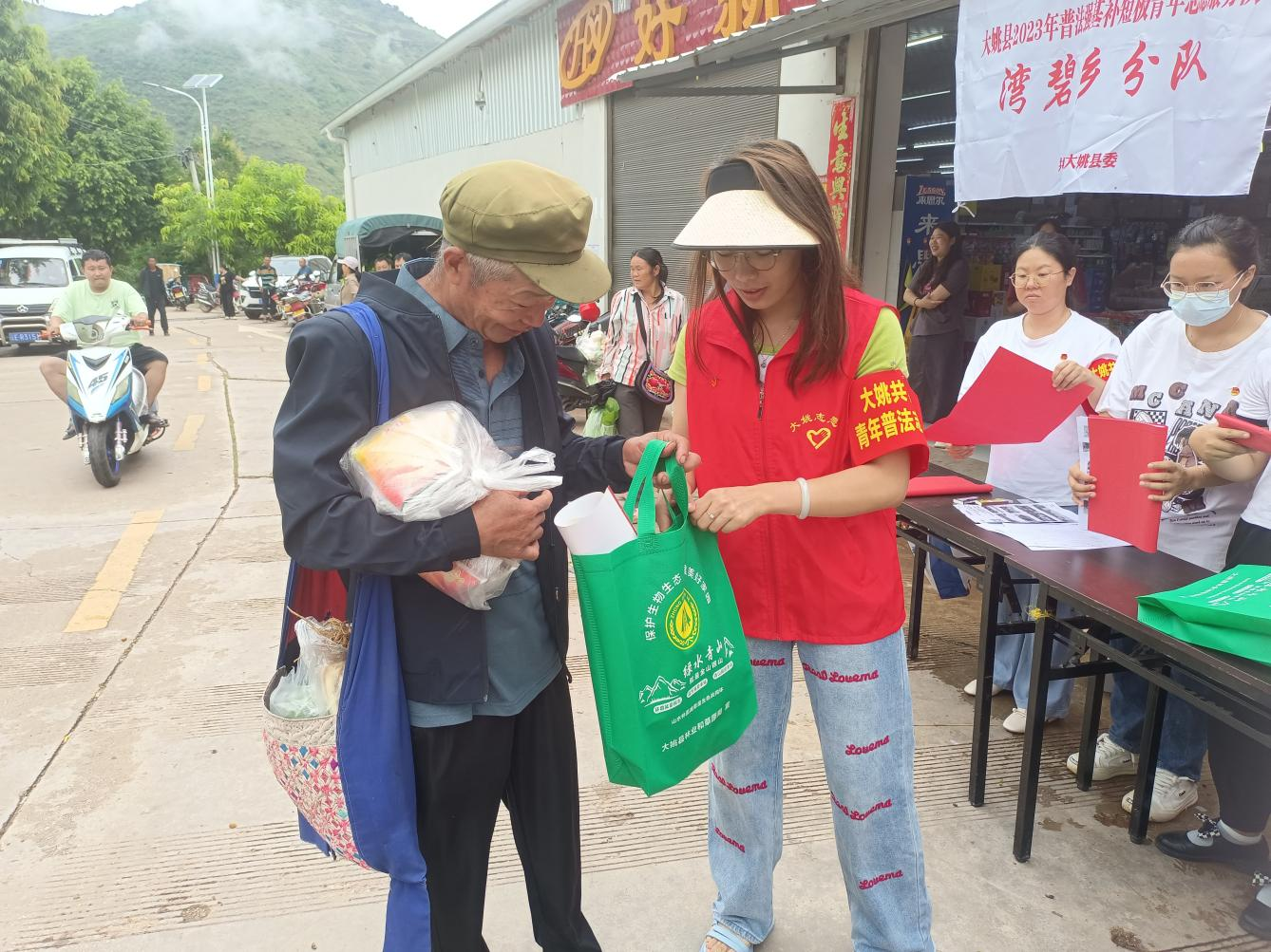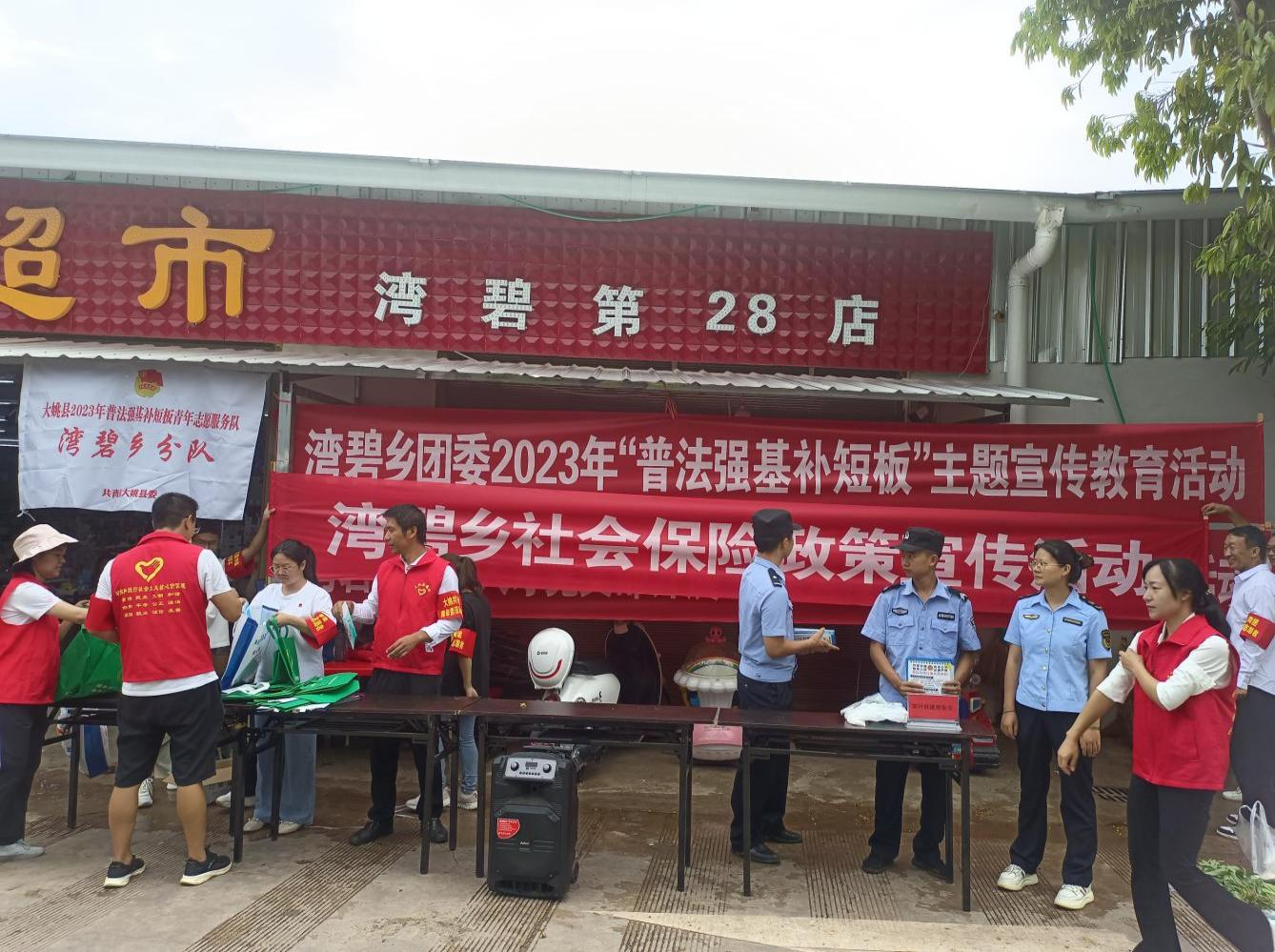 为贯彻落实好共青团大姚县委《 2023年普法强基补短板志愿服务专项行动方案》通知要求,充分发挥共青团和青年志愿者模范带头作用,更好地服务群众,湾碧乡团委于7月29日在湾碧赶集日联合湾碧司法、派出所、综治等行业站所开展“普法强基补短板”主题宣传教育活动。