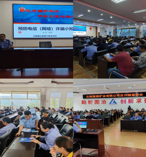 在楚雄矿冶有限责任公司,普法志愿者通报了今年来楚雄矿冶3名职工因提升征信、解除“百万保险”被诈骗及辖区内一名大学生帮助信息网络犯罪活动的真实案例。随后围绕什么是电信诈骗、电信诈骗的常见形式、如何识别电信诈骗以及被骗后的补救措施等开展讲解。讲解中,通过观看小视频、现场问答互动等方式,让广大职工更清楚地认识到电信诈骗手段的多样性和隐秘性,同时提醒广大员工宣传教育引导好家人,严禁将自己的银行卡、手机卡、微信、支付宝等账号出租、出借、出卖给他人参与电信网络诈骗活动,成为电信诈骗的“帮凶”。