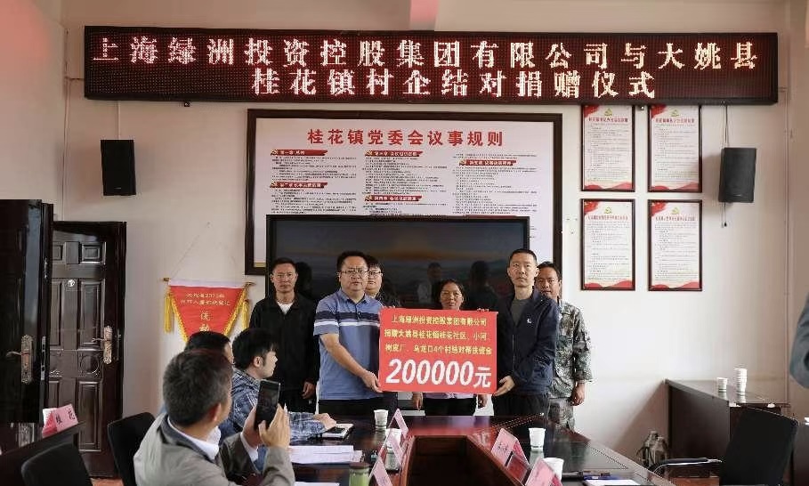 会上,上海绿洲控股集团党委委员、副总经理张杰代表上海绿洲控股集团有限公司向桂花镇桂花社区、小河、树皮厂、乌龙口4个村捐赠结对帮扶资金20万元,并向桂花中心学校捐赠价值3.8万元的校服。