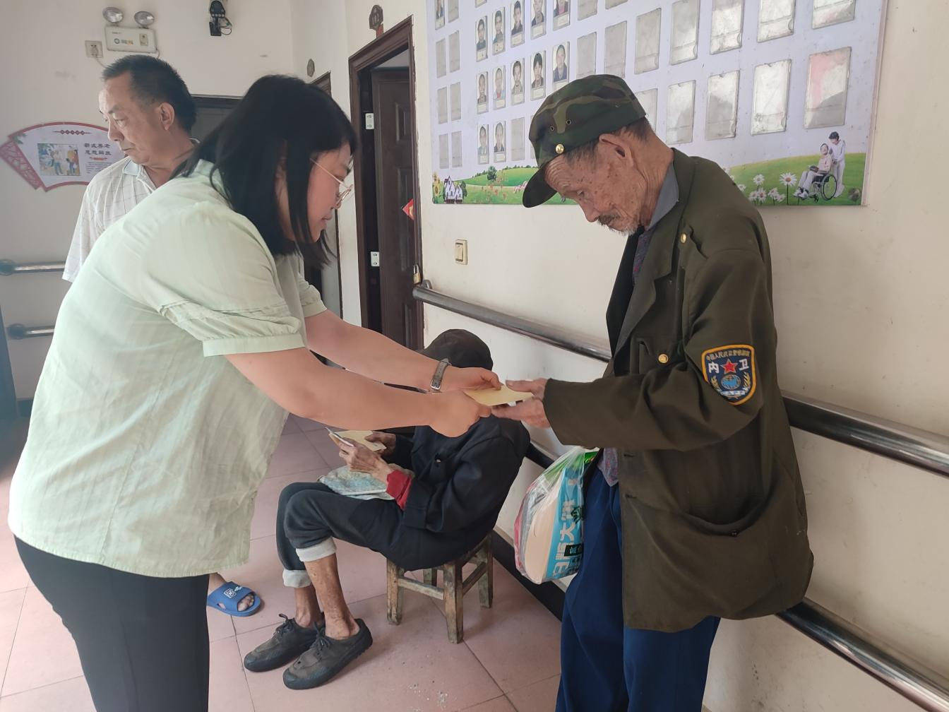 志愿者们帮助敬老院的老人们捶背揉肩、打扫卫生、整理房间,亲切地陪老人聊天谈心,详细了解他们的身体情况和生活状况。铁锁乡卫生院的医务人员为老人们开展义诊,耐心地和老人们讲解健康知识,并提醒他们注意换季日常健康防护。随后乡人民政府副乡长赵霁同志分别为在院的老人发放慰问金和中秋礼品,往日寂静的敬老院充满了欢声笑语,此次活动给老人带来了心灵上的慰藉,让老人们感受到了温暖和关爱。