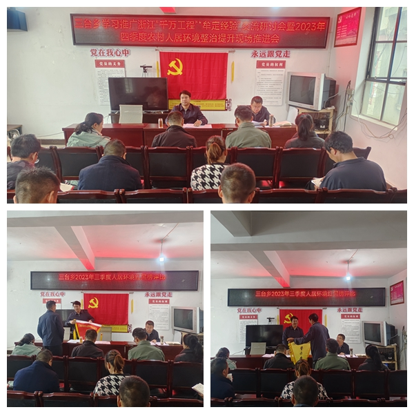 会议通报了三台乡2023年三季度人居环境整治提升工作,深入学习推广浙江“千万工程”“牟定经验”相关文件;并向三季度农村人居环境整治提升工作排名前后两名村委会分别授予“红旗”和“黄旗”,并由领取“红旗”村委会结合本村有效推进农村人居环境整治提升作交流发言,领取“黄旗”村委会就做好本村农村人居环境工作作表态发言。