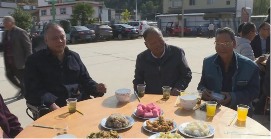 新街镇团山村委会薛家山小组村民 杨云:五块钱一餐还是比较划算的,饭菜都合我们的口味,在外面吃一顿要十多块,在这里吃一顿只要五块钱,还是划算的。