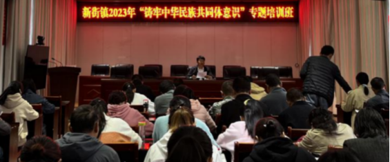 新街镇举行2023年铸牢中华民族共同体意识专题培训,全镇镇村干部、党外人士、各领域统战成员代表70余