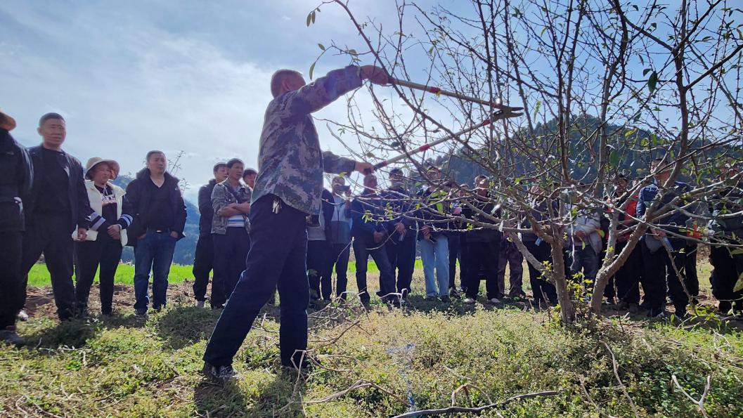 培训会现场,县林业局专家及技术人员采取理论知识和实际操作相结合的形式,就花椒、核桃品质选择、清园刨盘、树苗整修、科学施肥、防霜稳产、病虫害综合防治等管护知识进行了详细培训,为种植户现场示范修剪、拉枝、嫁接、树木整型等管护技术,并对群众提出的问题进行答疑解惑,进一步加深了群众对花椒、核桃的树形修剪、合理施肥、清园除草、病虫害防治等科学化管理手段的认识。
