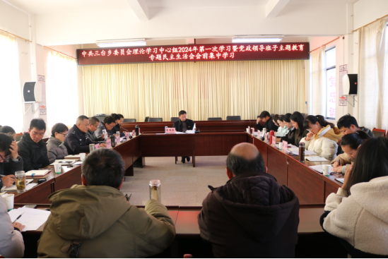 按照党中央和省、州、县委的部署要求,1月14日,三台乡党政领导班子召开学习贯彻习近平新时代中国特色社会主义思想主题教育专题民主生活会。乡党委书记夏国聪主持,县委第七指导组到会指导。