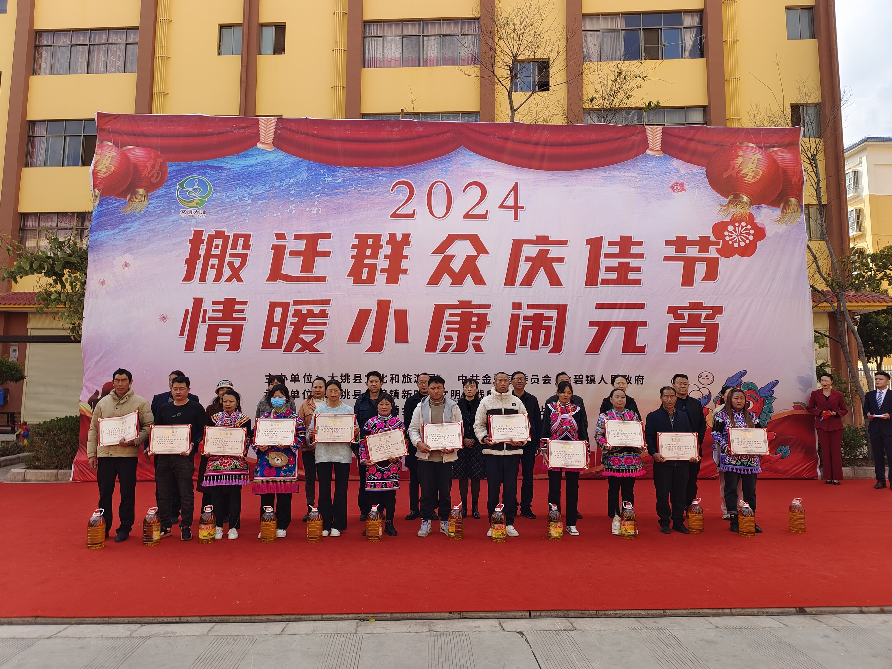 新春佳节沐春风,团圆喜庆闹元宵。为积极培育和践行社会主义核心价值观,充分挖掘元宵节的浓厚文化内涵,让搬迁群众过一个欢乐喜庆、祥和文明的元宵佳节。2月23日,由大姚县文化和旅游局、中共金碧镇委员会、金碧镇人民政府主办,由金碧镇新时代文明实践所和金龙社区、李湾社区新时代文明实践站共同承办的“搬迁群众庆佳节 情暖小康闹元宵”为主题的节日活动在金龙社区小康苑举行。