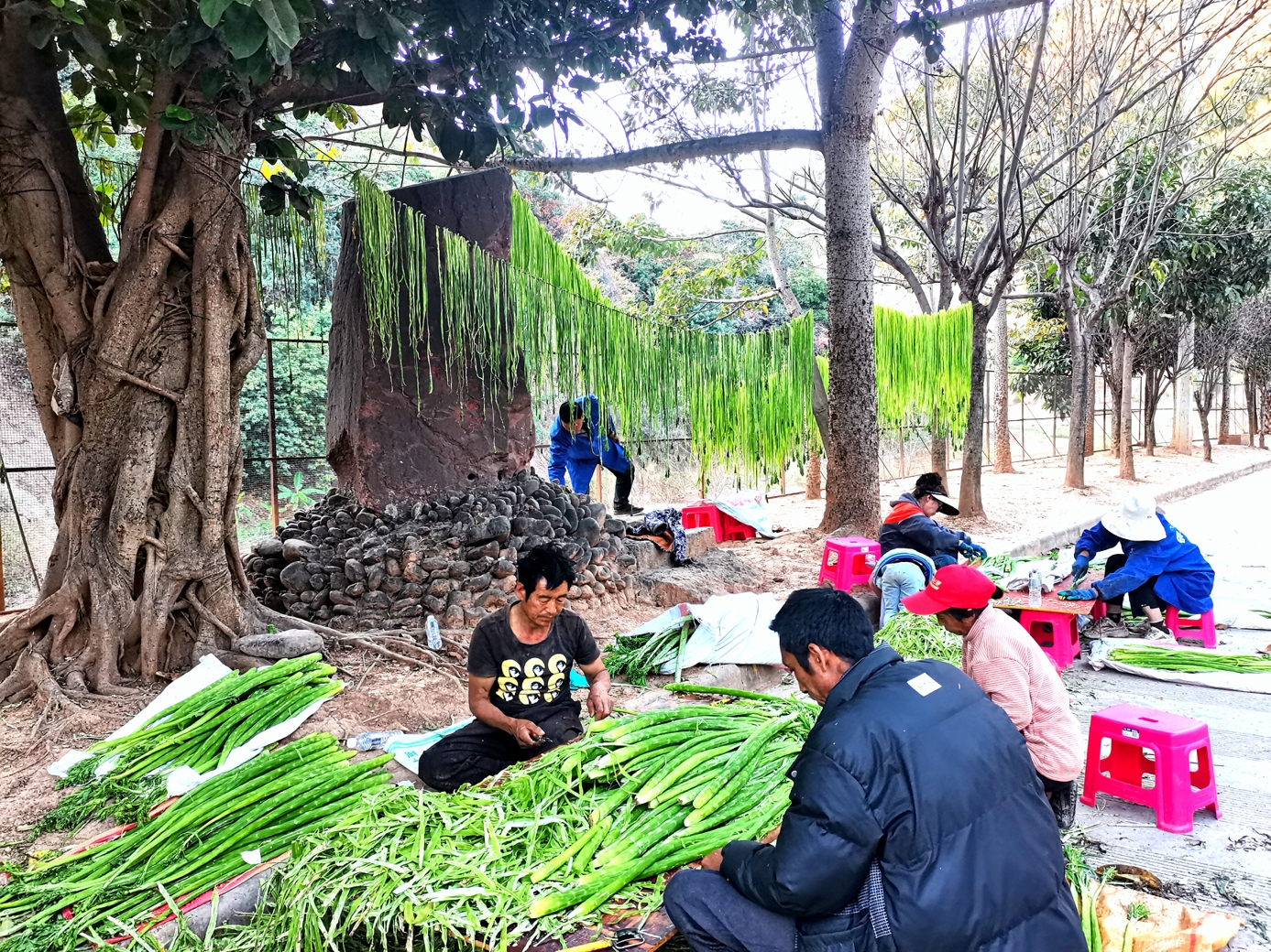 春初,大姚县三岔河镇再一次迎来了贡菜“好丰景”,一块块长满贡菜的田地里,种植户们正抢抓时机,割菜、修叶、削皮、划条、晾挂.....家家户户一片繁忙的景象。