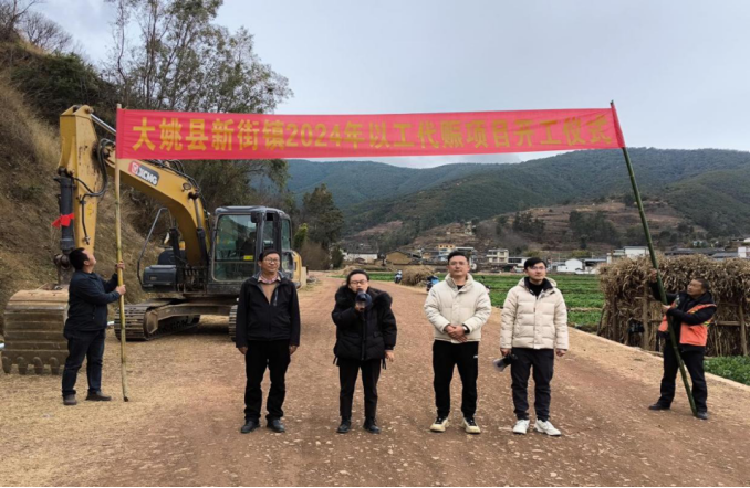 2024年1月25日下午,大姚县新街镇2024年以工代赈项目开工仪式在新街镇大桥村委会桥上小组举行。大姚县发展和改革局、新街镇、项目施工方、务工群众代表等共计30余人参加开工仪式。项目将对新街镇斑竹箐、大桥两个村委会6.5公里的道路进行硬化及附属设施建设。