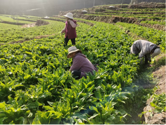 近年来,六苴镇依托独特的气候优势,因地制宜发展壮大特色优势产业,积极动员群众发展投资少、见效快的早春特色蔬菜产业,探索出“烤烟+蔬菜”的土地轮作新模式。在烤烟丰收后,群众就抢种产量高的贡菜等农作物,让“冬闲田”变成了“增收田”。