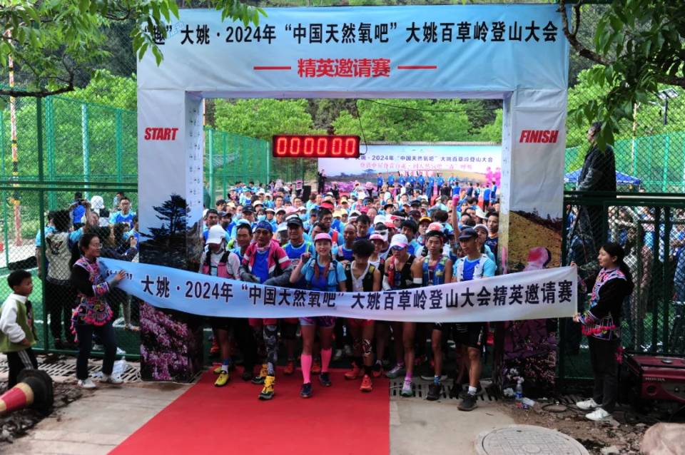 4月20日,锣鼓声、掌声、欢呼声响彻桂花镇自必苴足球场,“趣”大姚·2024年“中国天然氧吧”大姚百草岭登山大会精英邀请赛在桂花镇自必苴开赛,来自全国各地100余名登山精英选手和桂花本地200余名登山爱好者在丛林花海中竞技、一展风采。