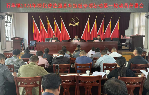 为贯彻落实省、州、县关于深化普法强基补短板专项行动部署要求,4月10日上午,石羊镇召开2024年深化普法强基补短板专项行动第一轮动员部署会,县专项普法第二工作队、全镇党政班子成员及干部职工、村(社区)书记、主任、县镇村普法全体队员50余人参加会议。